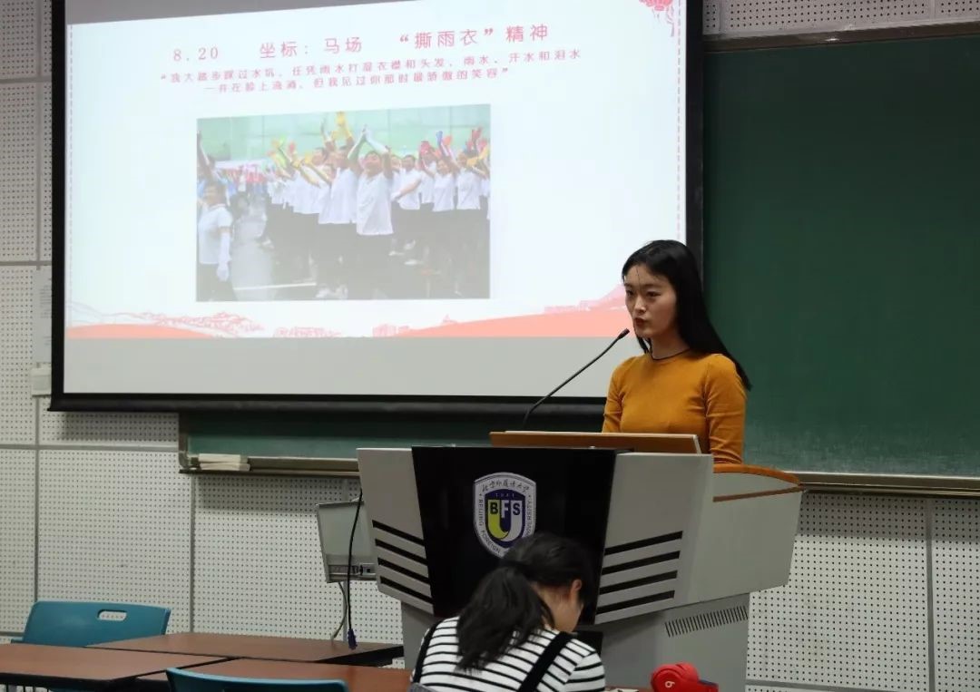 骄傲与自豪,必然如此。河清海晏、国富兵强,足以让每一位中华儿女为之动容。作为国庆盛会的亲历者,各位分享者用自己的真切体会,向在座同学讲述了自己爱国情感的升华过程。来自17方阵的吴俣同学详细描述了十月一日当天长安街上人头攒动、车辆川流不息却井然有序的场景。“能够调动几十万人,在同一个时间参加这样一场大型的活动,交通运输、等待候场、后勤保障......所有细节都做到万无一失,不是每一个国家都能做到的。没有一个强大的祖国,这一切都是空谈。”回忆起站在长安街上看飞机飞过头顶的场景,吴俣同学再一次热泪盈眶:“我想起七十年前,周总理为了显示数量,让我们的飞机多飞几遍。现在,那么多的飞机,就从我的头顶上飞过去,虽然我叫不出他们的型号,但是我知道,这就是祖国的强大,给我带来了超越语言的震撼与思考。”吴俣同学的语调很平静,但是在她极富感染力的叙述下,在座每个人都跟着她一起,为祖国繁荣昌盛而心潮澎湃。