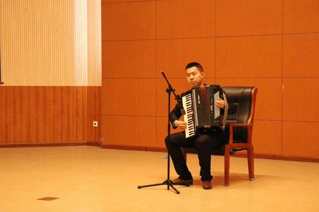 1903班七位同学带来活力四射的开场舞,拉开表演序幕。本场晚会的第一部分名为“青春”。首先,1902班的李垣村同学为我们带来《花儿与少年》手风琴演奏,同学们都陶醉于他优美动听的手风琴声中。然后,1905班的六位同学为我们带来歌曲《追光者》,全场观众摇动手机的点点闪光与歌曲相得益彰。本部分的最后一个节目由两位研究生同学为我们带来古典舞蹈《采莲 丽人行》,两位同学舞姿轻灵,步步生莲。