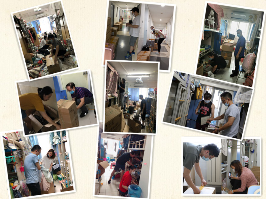 根据北京市和学校有关疫情防控的最新要求,我院2020届毕业生返校工作已经停止。为帮助不能返校的同学们处理好存放在宿舍的个人物品,学院领导、老师们集体出动,为每一位同学整理打包行李。