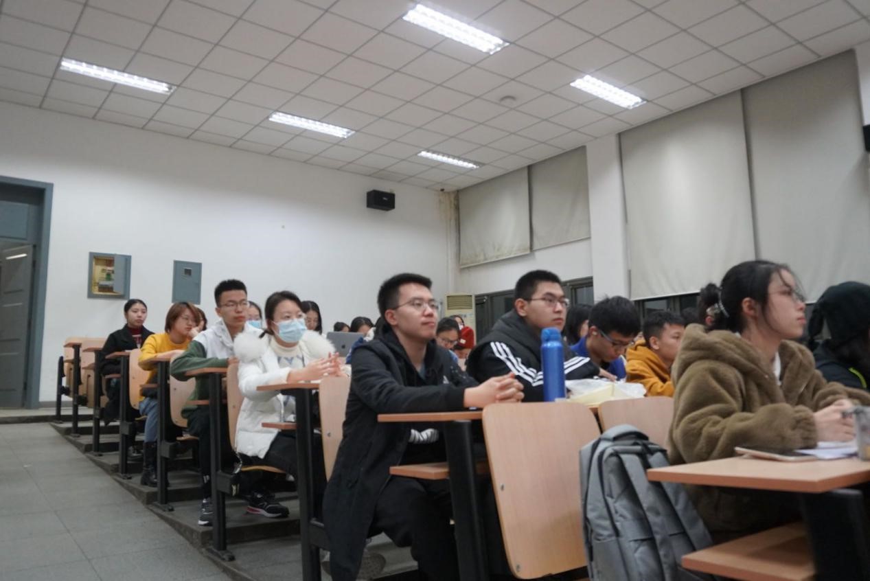 接着,韦云杰学长以“新中国史青年视角与青年责任”为题进行了宣讲。在对新中国发展史进行了大致梳理后,他着重对青年视角下的新中国展开了介绍。他以贵州省70年前后的照片对比,让同学们直观地感受到西部大开发、精准扶贫、基础设施建设、科技发展等在中国取得的巨大成果。此外,他通过分享自己的论文与走访经历,介绍了精准扶贫的路径与成效。并通过图片展示中国如何将国内成果分享到国外,让同学们深刻体会到中国作为大国的责任与担当。最后,学长就“新中国进程与青年责任”向同学们提出了四点建议与希望:参与社会服务、参与公益组织或非政府组织、参与支教活动以及加入国际义工行列。通过学长的演讲,同学们都对如何用自己的力量建设新中国有了更清晰的认识。