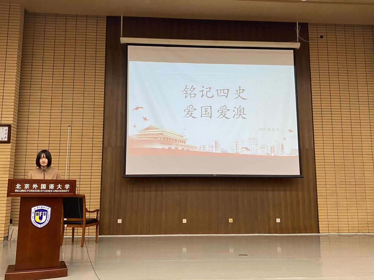 陈雨帆和闫泽宇同学把自己北外学习生活和学习四史的重要性联系在一起,呼吁同学们珍惜现在的和平环境,唱响属于我们的青春之歌;