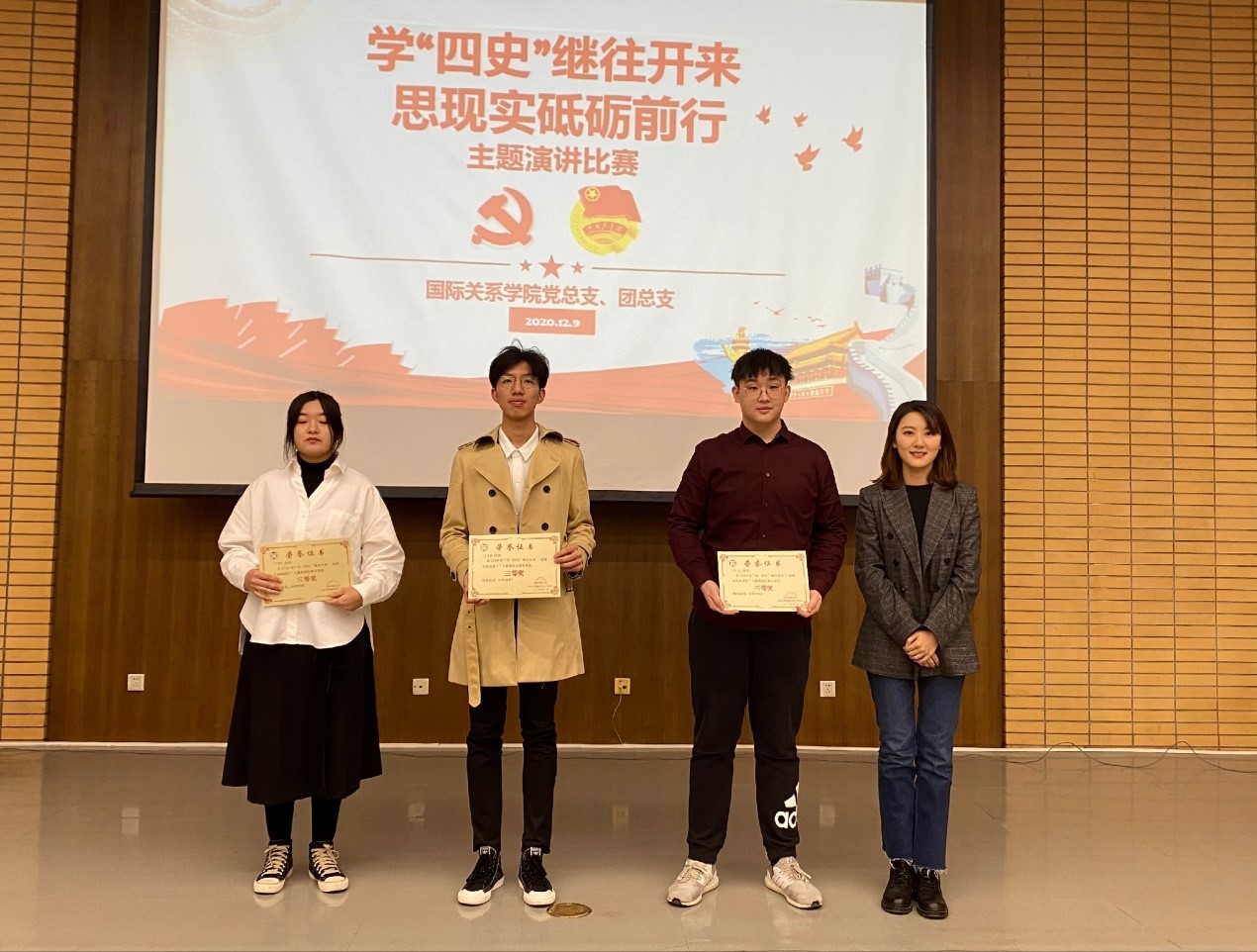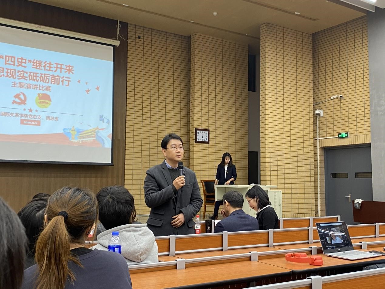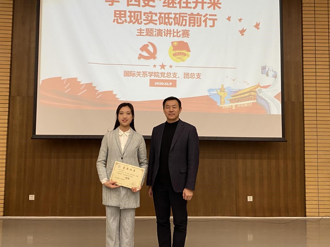 本次活动由20级外交6班朱格仪同学主持。此次比赛正值“一二·九运动纪念日,学思践悟中坚定理想信念,在奋发有为中践行初心使命,努力为实现两个一百年奋斗目标、实现中华民族伟大复兴的中国梦贡献智慧和力量。有利于增强广大青年对四史的理解,传承红色基因、坚定理想信念