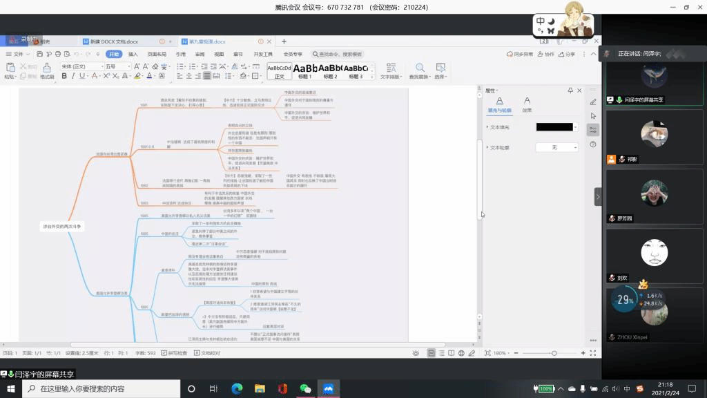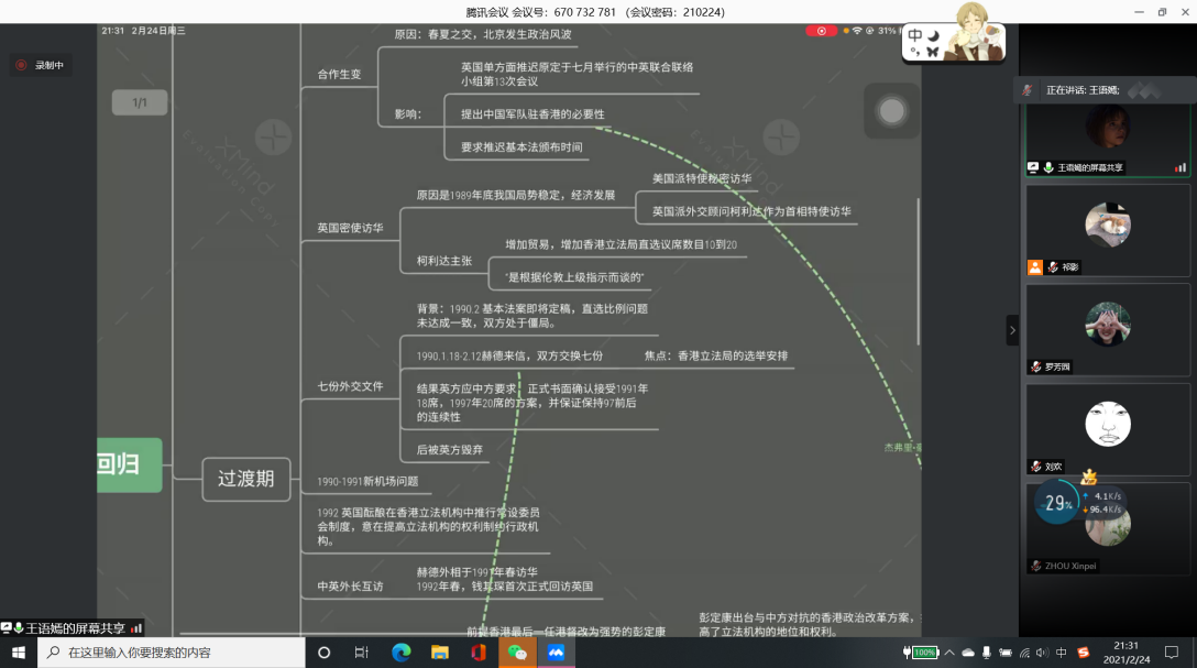 本次活动共收集到同学们的阅读心得共45份,指导嘉宾通过线上读书沙龙对同学们的阅读成果做出了点评并给出了相应的研读建议。在活动中,学生既扮演阅读者,又扮演讲述者。《外交十记》读书沙龙中,闫泽宇和王语嫣同学通过屏幕共享,展示了自己创作的思维导图,向大家讲解了书中内容的主要脉络。