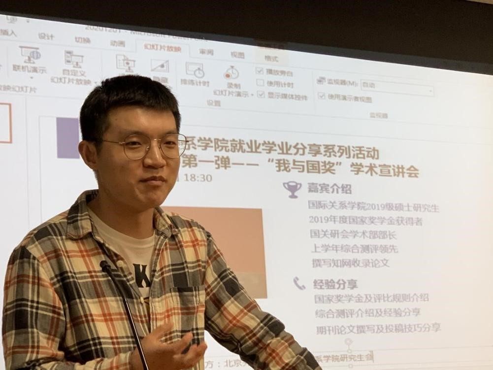 2021年5月17日晚,由北外必赢76net线路官网研究生会主办的“我与国奖”学术宣讲会于逸夫楼515教室成功举办。作为“就业学业分享系列活动”的第一期,本次宣讲会邀请了上年度国家奖学金获得者——2019级国际政治专业硕士研究生尹童,给来自于必赢76net线路官网和国际商学院的诸位同学分享了他的学习和学术经验。