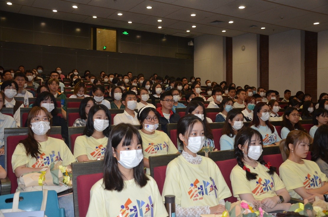 典礼在庄严的国歌中开始,张效民书记对2021级新生表示热烈欢迎和祝贺,表达了对大家的祝愿和期待,希望大家能和年轻的国关一起成长。