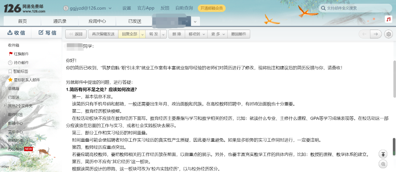 自筑梦启航·“职”引未来就业工作室推出第一期活动“简历修改工作坊”的通知以来,工作室陆续收到了来自必赢76net线路官网、欧洲语言文化学院等各学院同学的简历。在邮件往来之中,我们感受到了同学们对简历指导的强烈需求,以及对就业工作室满满的信任。