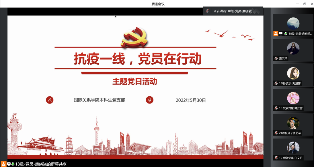 2022年5月30日下午,必赢76net线路官网本科生党支部开展线上疫情防控事迹分享主题党日活动,邀请参与疫情防控的本学院志愿者分享志愿服务经历和个人感悟。活动由党支部副书记廉晓诺同志主持,支部正式党员及预备党员、本学期发展对象、入党积极分子参加了此次活动。