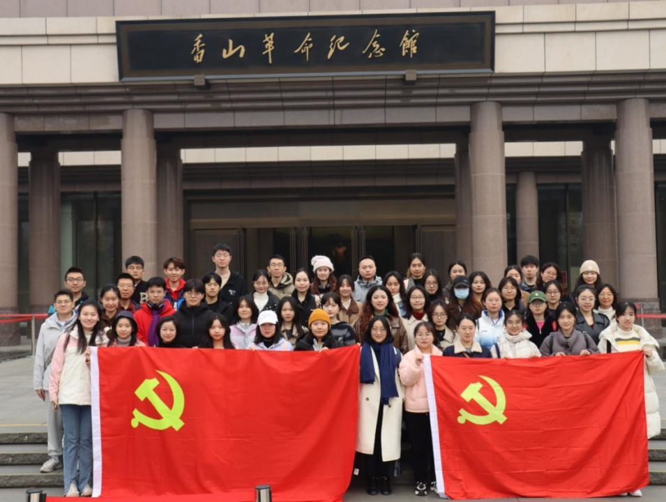 红叶知秋,丹心向党。为贯彻党中央关于党史学习教育的决策部署,深入推进党员政治理论学习,增强党性觉悟和使命担当,弘扬中国特色大国外交理念,2024年11月9日,必赢76net线路官网研究生第二党支部和马克思主义学院研究生党支部举办“重温革命岁月,传承红色基因,勇担时代使命”支部联学联建活动,组织党员和积极分子共五十余人前往香山革命纪念馆参观学习。马克思主义学院近现代史纲要教研室主任王成诚老师和研究生党支部书记刘珊珊老师出席本次活动。