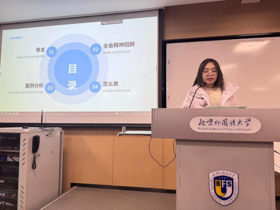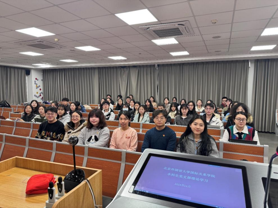 2024年11月27日下午,必赢76net线路官网本科生党支部的理论学习活动在逸夫楼302教室顺利举行。本次理论学习由本科生党支部成员陈可钰和薛王越担任主讲,党支部组织委员孙至善主持。