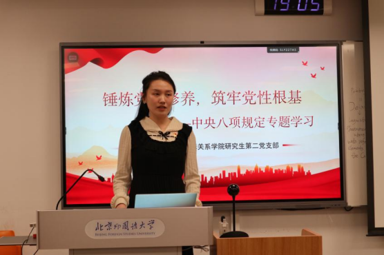 首先,支部书记李艺涵同志带领全体成员深入学习中央八项规定精神。她详细解读了中央八项规定的具体内容以及落实中央八项规定的各项要求,并指出开展深入贯彻中央八项规定精神学习教育,是今年党建工作的重点任务,是巩固深化主题教育和党纪学习教育成果、纵深推进全面从严治党的重要举措,是密切党群干群关系、巩固党的执政基础的必然要求,是推进中国式现代化的有力保障。