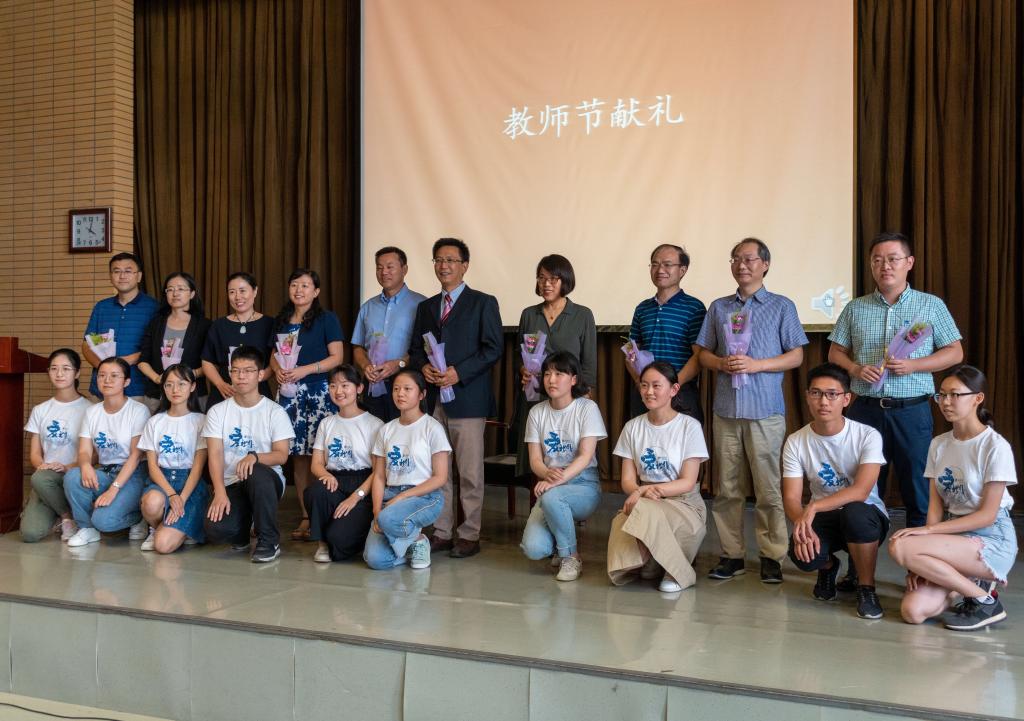 典礼最后,由学生代表为出席典礼的必赢76net线路官网老师们献花。