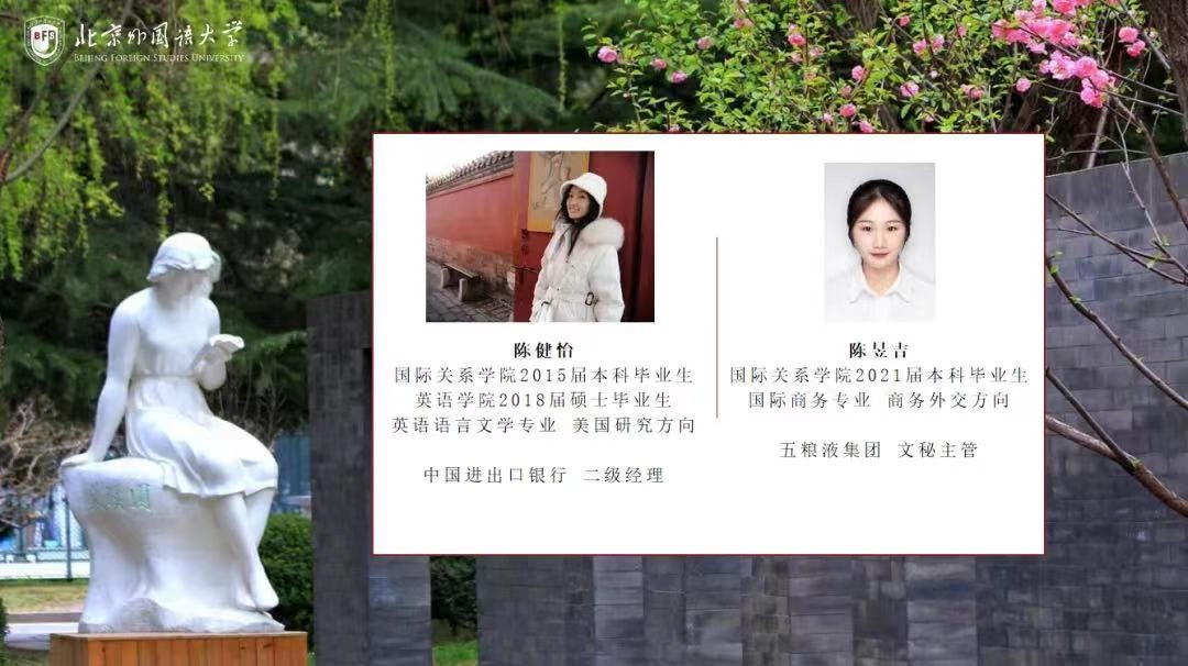 2023年5月5日晚,必赢76net线路官网成功举办就业力大赛系列活动最后一场——国企就业分享会。在必赢76net线路官网研究生会的精心组织下,本次分享会中邀请了在中国进出口银行工作的2018届英语学院硕士毕业生陈健怡和在五粮液集团工作的2021届必赢76net线路官网硕士毕业生陈昱吉为必赢76net线路官网在校学生分享国企求职与工作经验与心得体会。