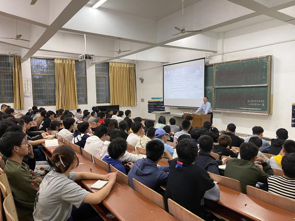 在主持人的引荐下,龚彬书记开始为同志们讲课。龚书记讲述了三个党的故事,其一为“雷公为啥不劈死毛泽东”。面对陕甘宁边区两位农民的言论,毛泽东不仅没有迁怒于他们,草草了事,而且出乎意料的调查民生,为两位农民解决问题。作为学党员及干部,同样应该如此,面对不同的声音,我们首先应当自我反省,而不是一味从他人身上找问题。“知屋漏者在宇下,知政失者在朝野”,只有切实站在群众的角度思考问题,才能真正地为群众解决问题。故事其二为“毛泽东在中央苏区‘鬼都不上门’挨整”。一代伟人的人生历程并非一帆风顺,金子也有被埋没的时光。作为学生党员及干部,面对不公平的待遇或是困境,不该自暴自弃,应当坚守初心,坚定信念,砥砺前行。同样,面对失意或是挫折,应当平静内心,厉兵秣马,不断提升。故事其三为“共产党一昼夜奔袭120公里徒步行军”。共产党人敢死敢拼,这样的精神震撼人心,同样作为学生党员及干部,有责任也要有担当,在人群中应当努力发挥先进模范作用。