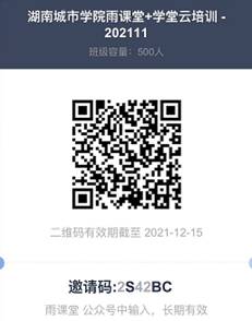 参训人员请于11月23日前微信扫码或者点击“雨课堂”公众号中的“更多”→“加入班级”输入邀请码,即可加入班级。