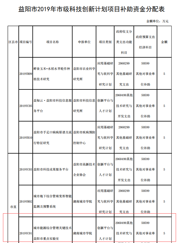 20191119日,益阳市财政局和益阳市科学技术局发布了《关于下达2019年科技创新计划项目补助资金的通知》,学院城市能源综合管理关键技术益阳市重点实验室成功入选。