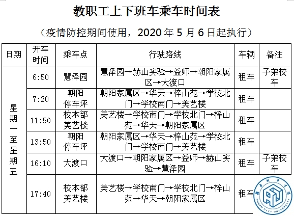 2.教职工上下班乘车时间表
