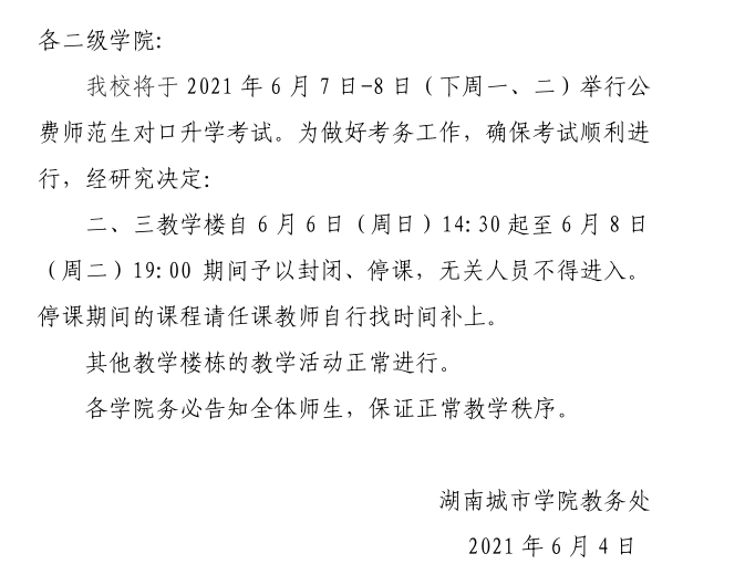 关于公费师范生对口升学考试期间停课的通知