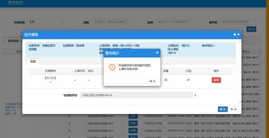 如与其他课程有冲突,系统会提示