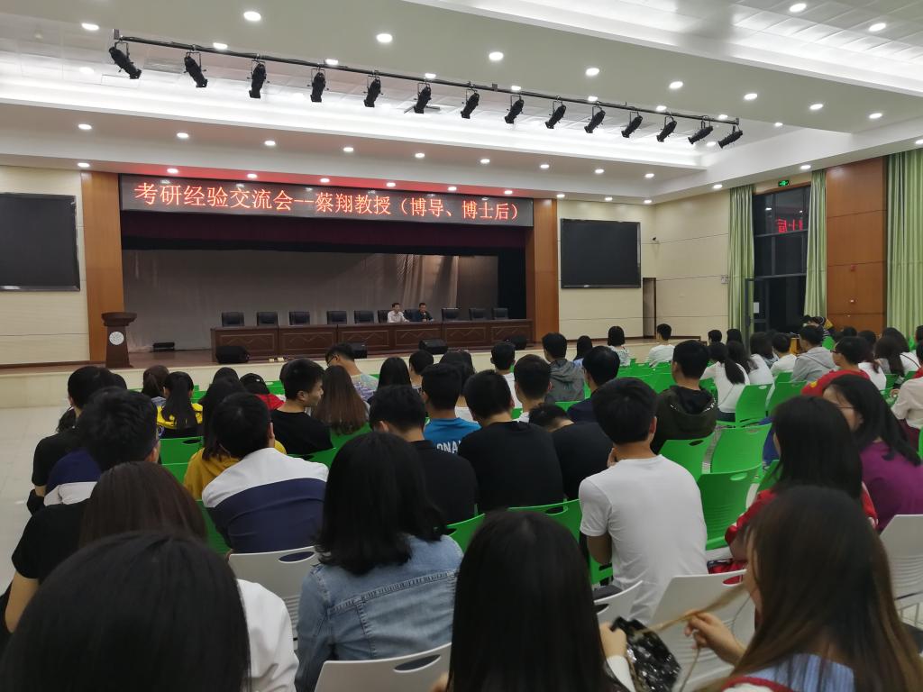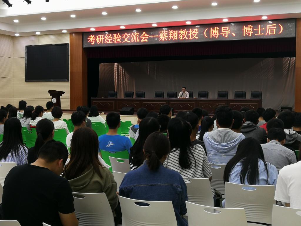 2018年4月18日晚7:00,管理学院就业与考研经验交流会于新食堂三楼学生活动中心举行,本次交流会由桂林电子科技大学博士生导师蔡翔教授进行主讲,beat365中国唯一官网管理学院党委副书记贺望林主持,出席本次交流会的有管理学院学工办主任王方俊、辅导员张力、14级考研录取学生代表以及15、16级有考研意向的学生。