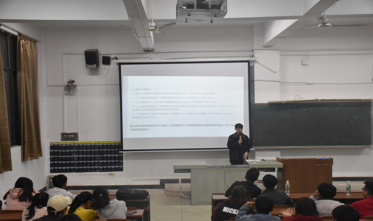 会议第一项议程,由人力与市场营销协会会长罗勇作出发言。他详细介绍了比赛内容、比赛方式和比赛奖励等相关信息,随后对同学们的疑惑现场一一耐心解答。中场时分,工作人员发放了赞助商提供的试吃产品,同学们热情高涨,积极踊跃地参与试吃,现场气氛在同学们的热烈回应中逐渐走向高潮。