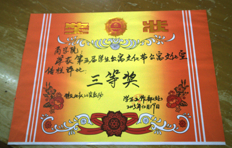 公寓文化节活动中我院共获得包括最佳组织奖在内的八项大奖,在趣味运动会、雅室设计大赛、文明先锋行“扫楼”公益活动、劳卫检查与文明监督体验大比拼、“我的宿舍小咖秀”微电影展播、“状元寝室”PK赛、学生公寓文化街等活动中均有不俗表现。