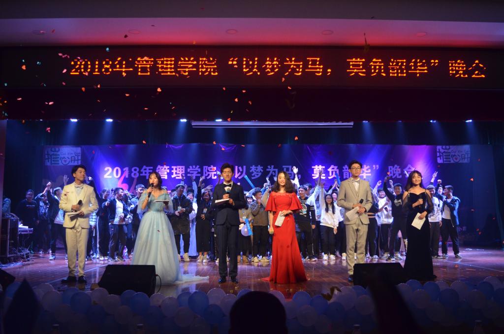 2018年12月1日19:00,管理学院2018年迎新晚会在新食堂三楼举行。出席本次活动的嘉宾有管理学院院长孙倩、党委书记汤腊梅、党委副书记贺望林、部分教师、2012级旅游管理专业12位毕业校友、大一全体学生按时到场与会。