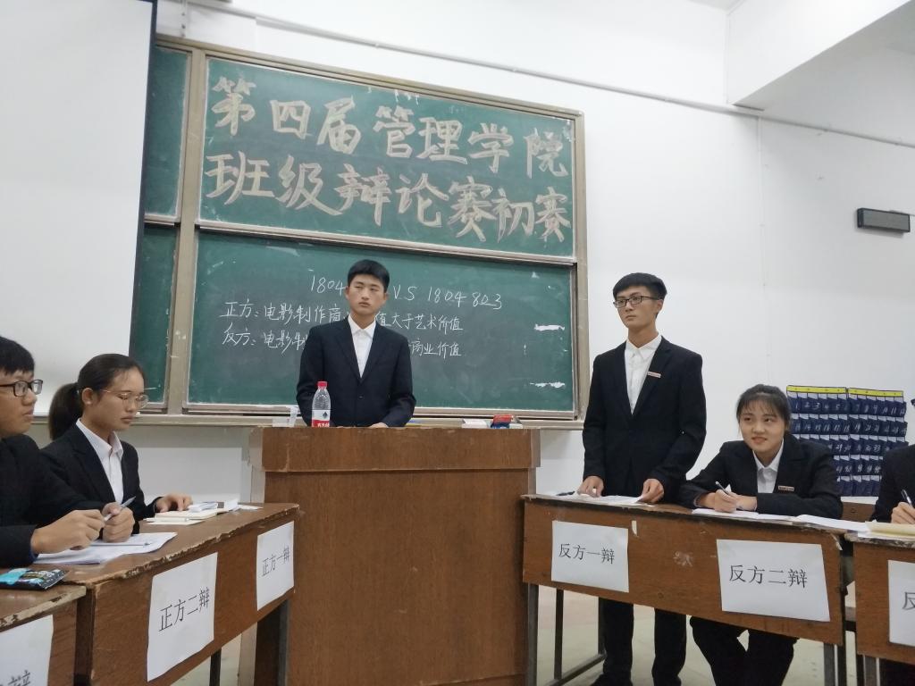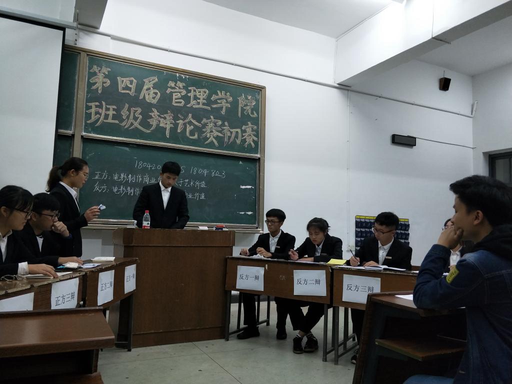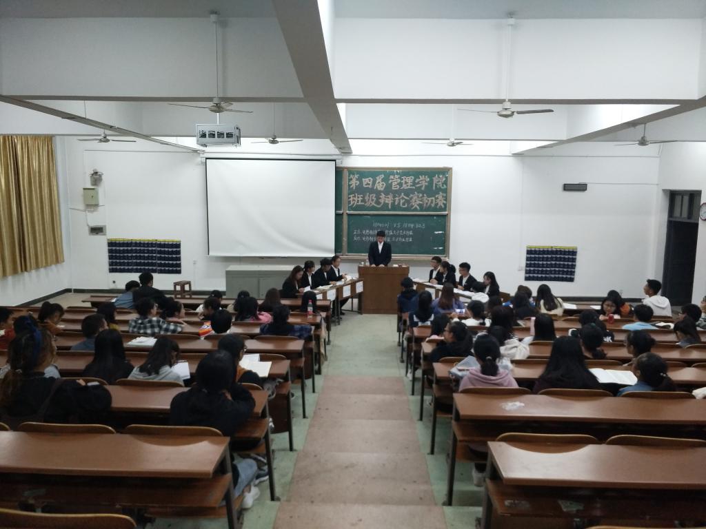 2018年10月19日19:00,管理学院班级辩论赛初赛于一教206、207、308和309顺利举行。出席本次辩论赛的嘉宾为管理学院团委、学生会主席团成员和管理学院辩论队队员,管理学院大一全体学生按时到场与会。