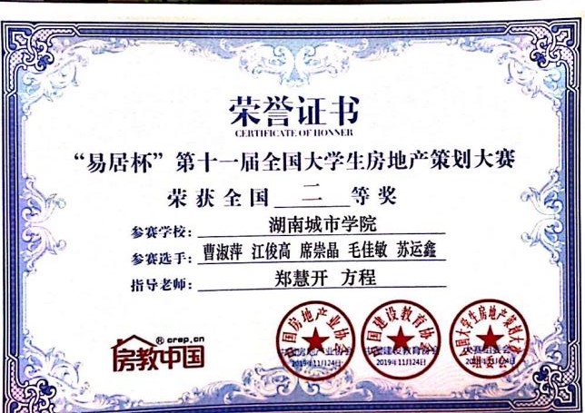 2019年11月22-24日,由中国房地产业协会指导、中国建设教育协会主办,北京建筑大学、房教中国、深圳大学联合承办的“易居杯”第十一届全国大学生房地产策划大赛全国总决赛在深圳大学隆重举行,beat365官网派出两支队伍参加,均获全国二等奖佳绩,并获大赛“优秀组织高校”荣誉。