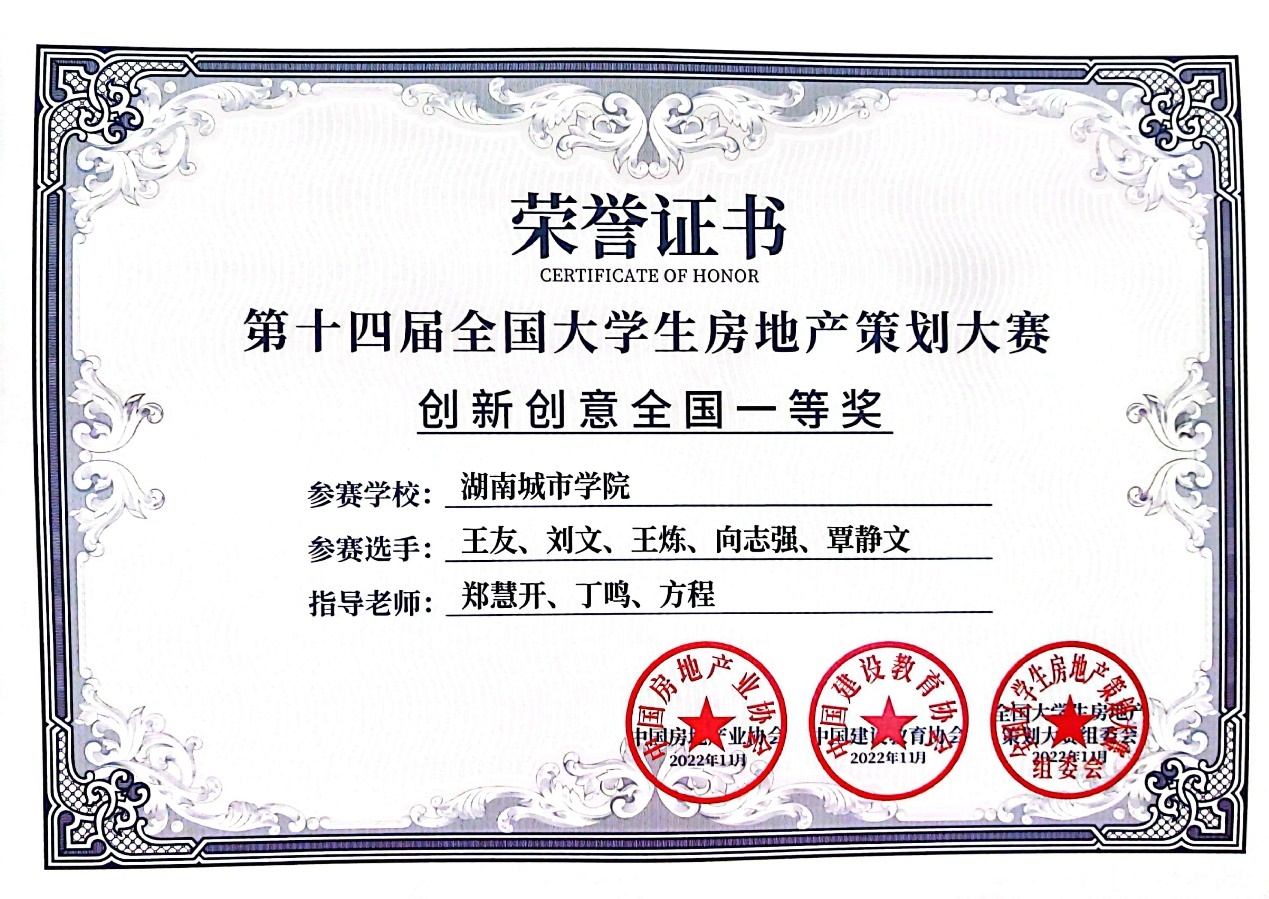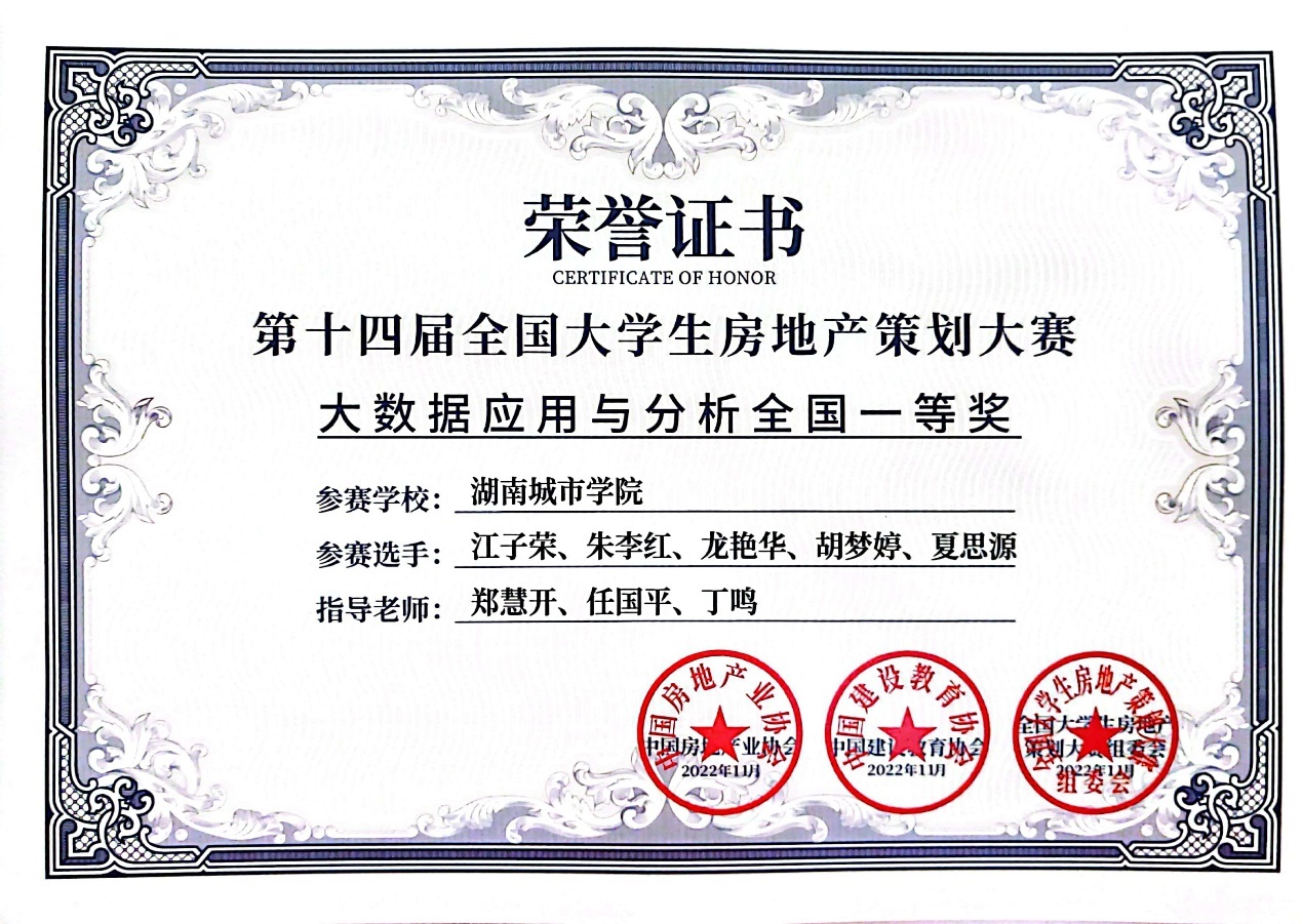 beat365官网四支代表队伍在管理学院郑慧开、薛姝、任国平、丁鸣老师、建规学院方程老师认真严谨的指导下,刻苦努力备赛。其中20级房地产开发与管理专业杜晓琴、胡立秋、潘志平、石潇、王友、刘文、王炼、向志强、周昕洋、朱琦、雷坷凡、向媛、19级城乡规划专业李众望、王文彪、19级建筑学覃静文共15位同学组成的3支队伍获全国创新创意一等奖,20级房地产开发与管理专业江子荣、胡梦婷、龙艳华、朱李红、19级城乡规划专业夏思源共5位同学组成的队伍获全国大数据运用一等奖,成绩创历史新高!