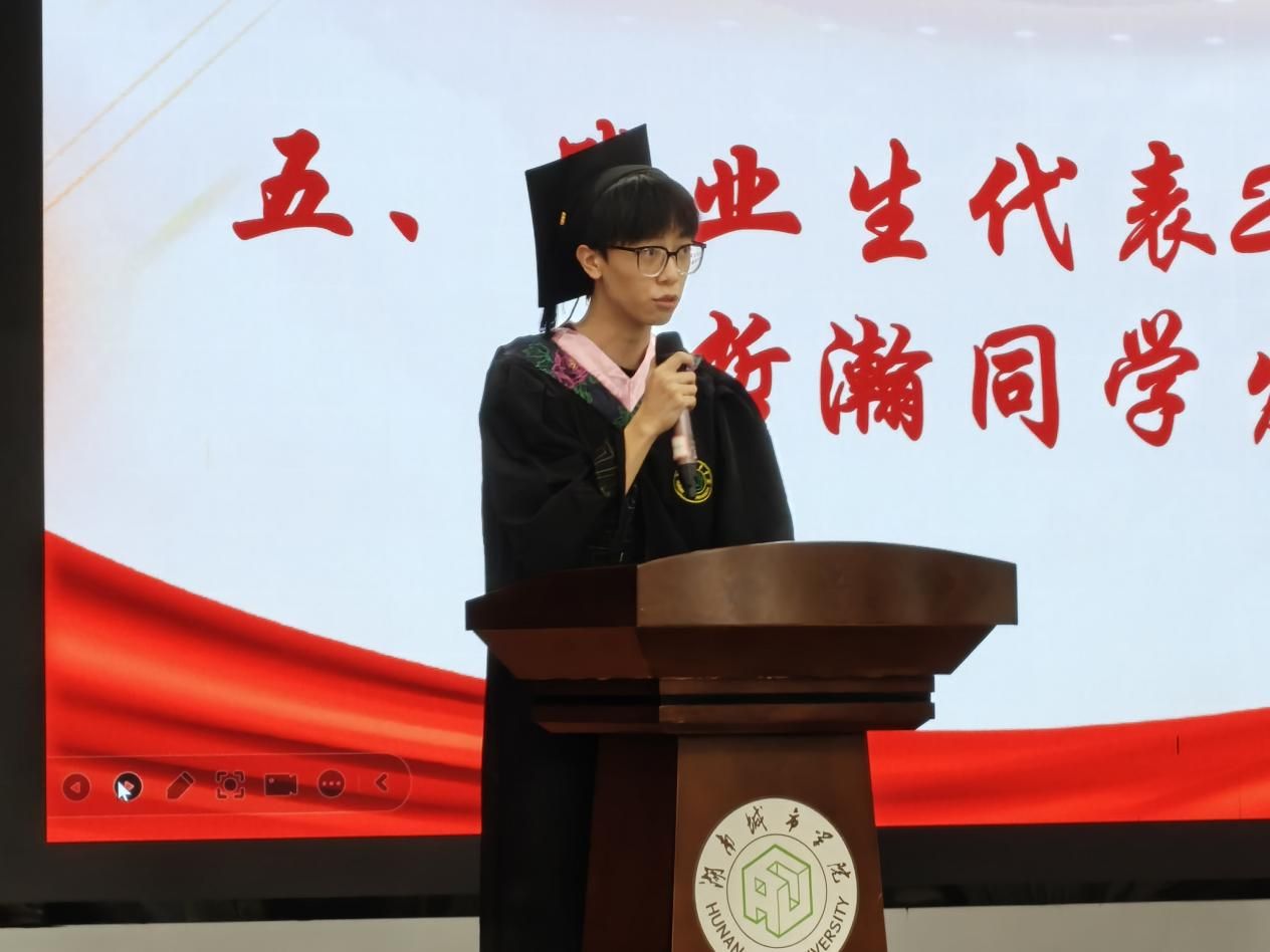 典礼伊始,全体肃立奏唱中华人民共和国国歌。国歌奏毕,院长汤勇教授登台致辞,肯定毕业生学业成果,为学子未来征程指引方向;教师代表彭婧雅老师接力发言,传递师者对毕业生的期许与嘱托;毕业生代表黄哲瀚同学登台,回顾在校求学历程,抒发对学院与师长的感恩,展望人生新途 。致辞与发言环节后,学院教师为2025届毕业生拨穗、颁发学位证书并合影。至此,管理学院2025届毕业典礼暨学位授予仪式结束。