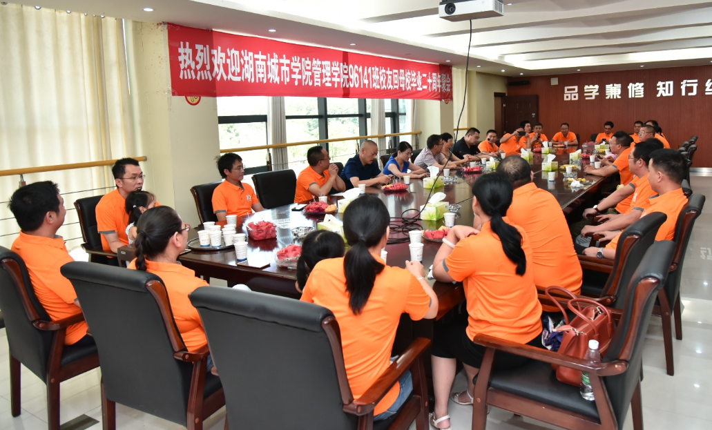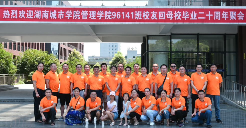 2019年7月27日上午,冒着炎炎烈日,工程造价专业96141班校友毕业二十周年荣归母校系列活动隆重举行。返校聚会的校友们首先在原湖南城建高等专科学校和校本部进行了参观,回忆了往日的学习、生活的点点滴滴,同时感受到了学校的改革发展。原湖南城建高等专科学校房地产系系主任薛姝教授从头到尾进行了陪同。上午10:20左右,在办公楼一会议室,返校聚会的24位校友与管理学院领导举行了96141班毕业二十周年师生座谈会。座谈会由管理学院党委副书记蔡英杰老师主持。在座谈会上,学院党委书记徐习军教授首先代表学校及学院对各位校友毕业二十周年回母校聚会表示热烈地欢迎。随后学院院长孙倩教授简要介绍了管理学院目前的现状,希望各位校友对管理学院的发展献计献策。校友们为感谢师恩,分享了自己二十年来的从业经历和感想,并对学院发展和专业建设提出了中肯建议。最后管理学院党委副书记王润华教授做了总结发言,他首先对校友们时隔十年荣归母校表示诚挚欢迎,对校友们在事业上取得的成绩表示热烈祝贺,指出母校是校友永远的精神家园和港湾,同时也希望校友们充分发挥自身的资源优势,为母校、学院及专业的发展多做贡献。座谈会结束后,校友们与到会学院领导分别在学校南门及管理楼前进行了合影留念。
