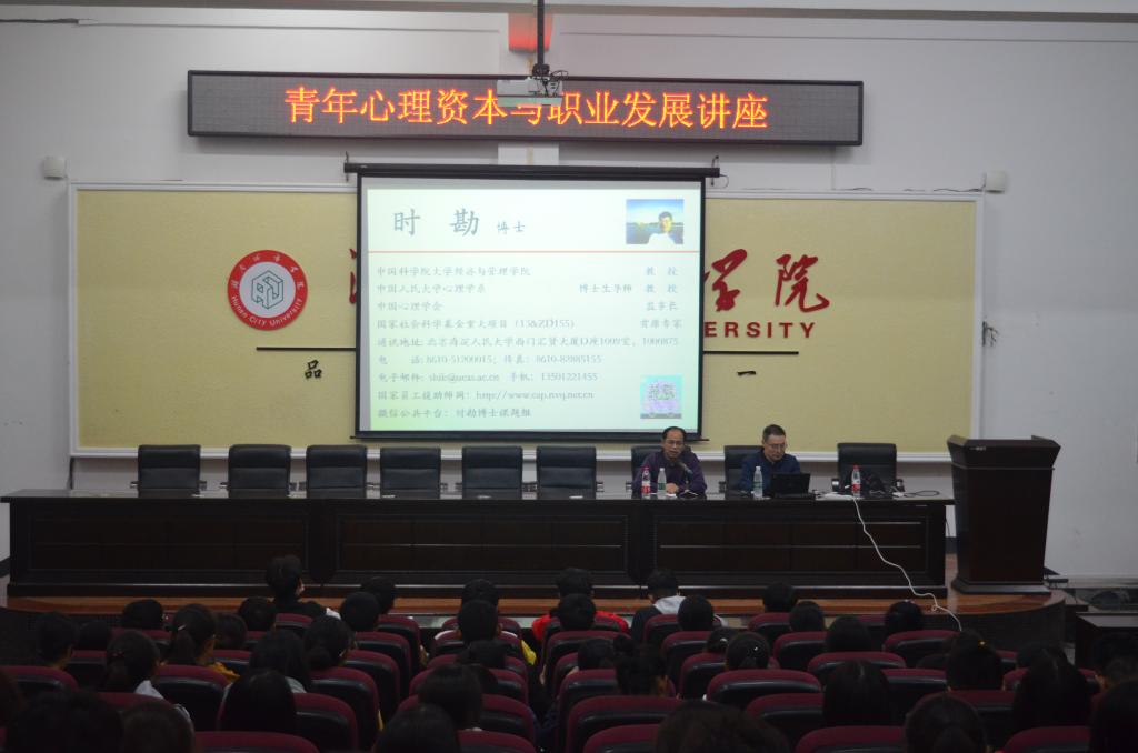 9月27日晚,受学校邀请,中国科学院社会与组织行为研究中心博士生导师时勘教授在电信楼视频会议室以“心理资本与职业生涯”为题,运用其高超的语言艺术,向全院教师和学生展示了一场富含学术性和应用性的启发式观摩课程,何振副校长主持。