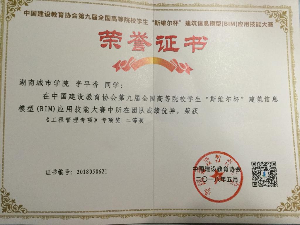 2018年5月25日-5月27日在上海杉达学院举行了第九届全国高等院校学生“斯维尔杯”建筑信息模型应用技能大赛决赛(南方赛区)。全国共有329所本科院校的388支代表队参加。beat365中国唯一官网管理学院龙敬庭老师指导的“龙诚造价”队参加了决赛,取得了工程管理专项竞赛二等奖,参赛队员为15级工程管理专业的刘硕、刘啸尘、李瑞、李平香四位同学。