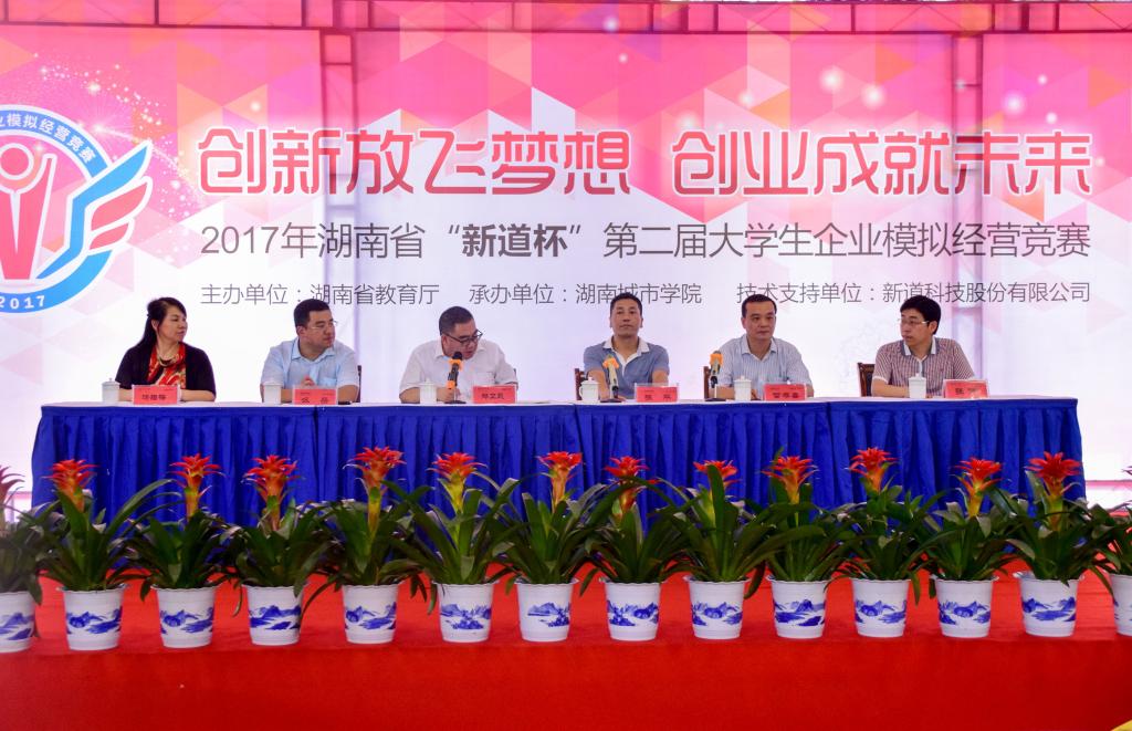 9月24日中午12:30 ,“新道杯”第二届湖南省大学生企业模拟经营竞赛闭幕式在beat365官网体育馆内举行。湖南省教育厅高教处副处长张平,beat365中国唯一官网副校长雷存喜、郑卫民,beat365中国唯一官网管理学院院长汤腊梅等领导人到场出席,beat365官网郑卫民副校长主持闭幕式。