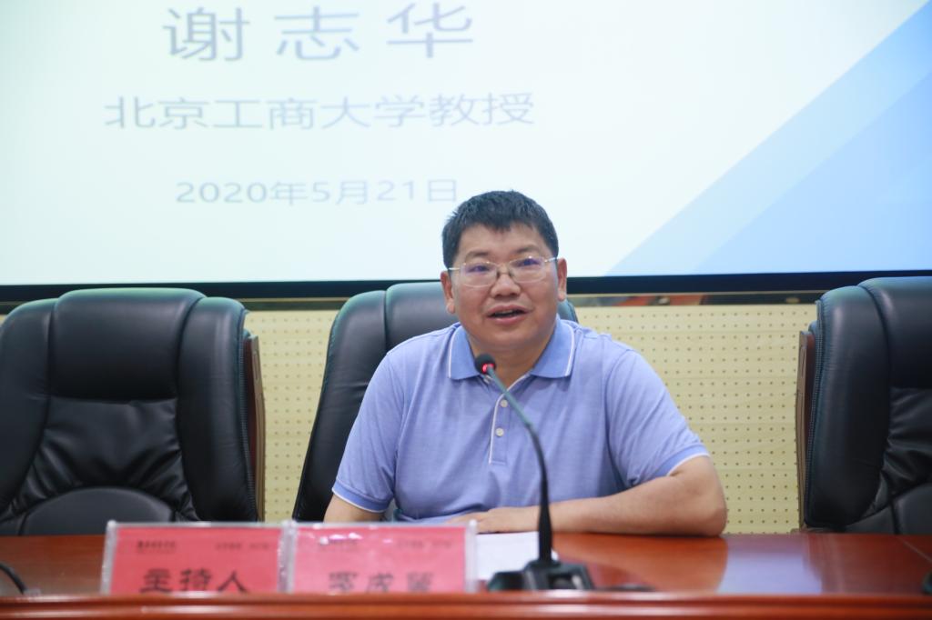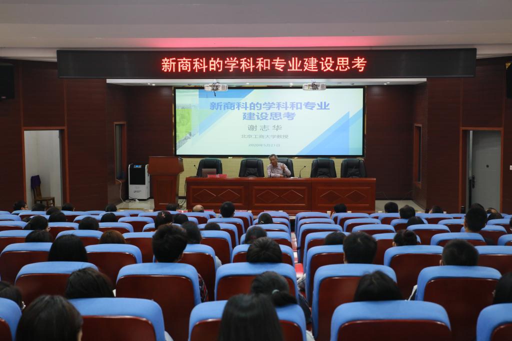 5月21日,北京工商大学谢志华教授应邀到访beat365官网,在建规楼121为beat365官网师生带来题为《新商科的学科和专业建设思考》的学术讲座。校党委书记罗成翼教授、副校长何振教授、教务处、科研处、学科处等职能部门处长、学校人文社科学院院领导及教师学生代表等百余人到场听取了讲座。讲座由党委书记罗成翼教授主持。
