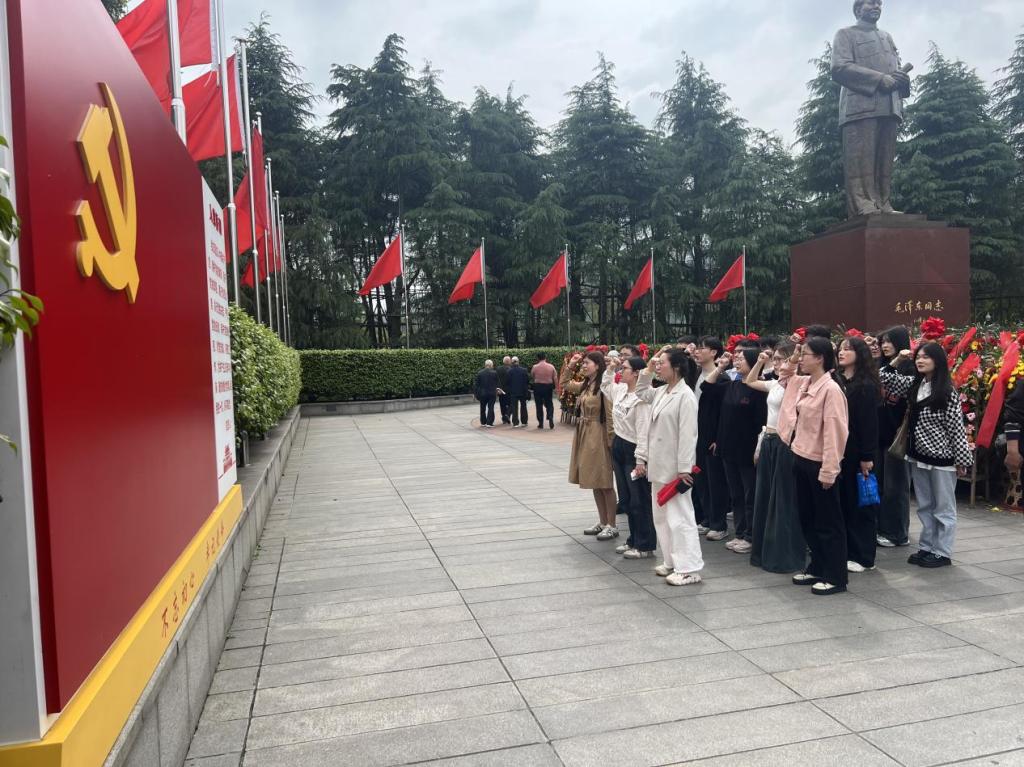随后,在毛主席铜像广场,全体党员向毛泽东同志铜像鞠躬,依次缓步绕行一周,深情瞻仰,表达深切缅怀之情。“我志愿加入中国共产党,拥护党的纲领,遵守党的章程,履行党员义务,执行党的决定……”党旗前,管理学院党委副书记王方俊带领全体成员重温入党誓词,回忆对党的庄严承诺,牢记初心使命,坚定理想信念。