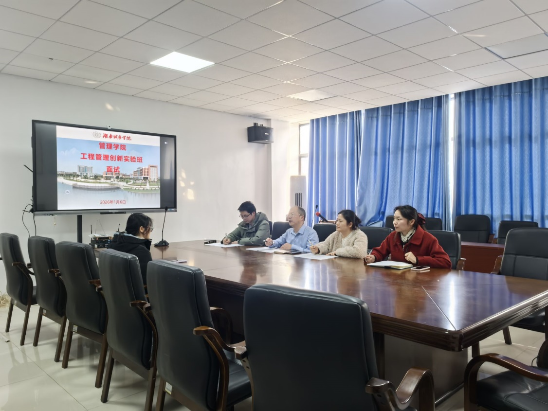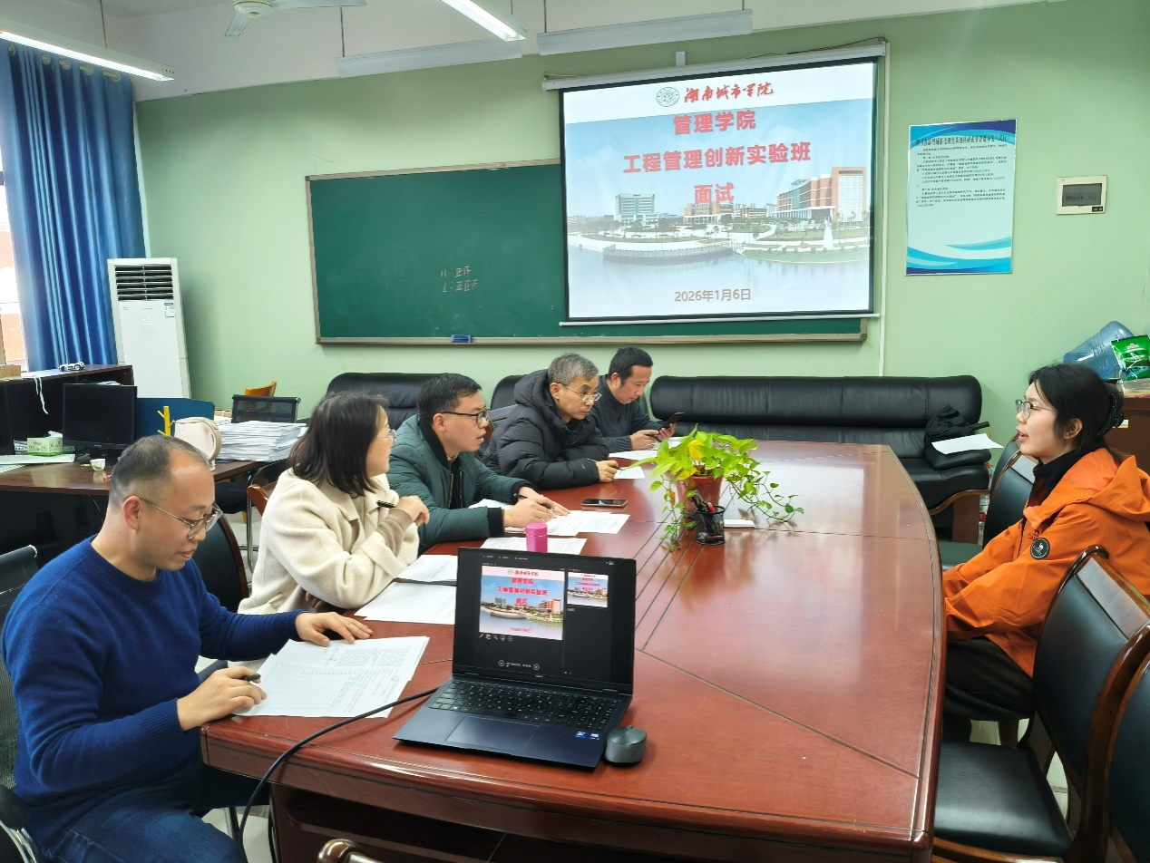 本网讯(通讯员:刘正夫)2026年1月6日下午3点,beat365中国唯一官网管理学院工程管理专业创新实验班选拔面试在管理楼603与610教室同步举行。管理学院院长汤勇、工程管理专业系主任刘正夫、支部书记张胜和专业教师龙敬庭、彭志超、谌跃飞、刘思蕙、陈艳,以及辅导员陈小梅等多位老师共同参与评审。