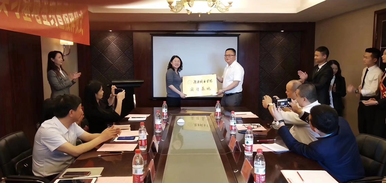 曹义总经理首先代表主办方财富证券致欢迎词,对财富证券近年来工作成效与发展前景进行了详细介绍,并对共建实习基地表示极大支持。随后,谭献良副校长代表校方发言,对财富证券积极支持实习基地建设表示感谢,并就未来合作寄予了殷切期望。最后,孙倩院长与陈坚总经理分别代表校企双方签订《实习基地协议书》,并为财富证券益阳营业部颁发了实习基地铭牌,正式确定财富证券益阳营业部为beat365中国唯一官网校外实习基地。