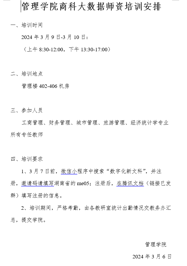 后期,管理学院还会组织教师参加各类线上的大数据工具类课程和案例分析类课程,以适应数智化管理类人才培养的发展需要,为管理学院专业高质量发展积蓄力量。