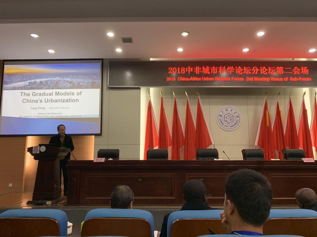 我院汤勇教授应邀出席“中非城市科学论坛”,并在智慧城市建设进展分论坛做“The Gradual Models of China’s Urbanization”的主题演讲。汤教授介绍了我国半城镇化现象以及实现新型城镇化的路径:就近城镇化、家庭城镇化、半工半耕城镇化和代际城镇化。汤教授的观点引发了国际友人的浓厚兴趣,双方在活动现场交流最新学术成果、分享经验并共磋热点趋势。