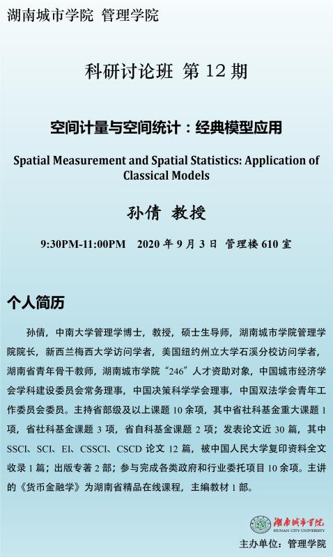 【管院科研论坛】12 孙倩 教授:空间计量与空间统计:经典模型应用