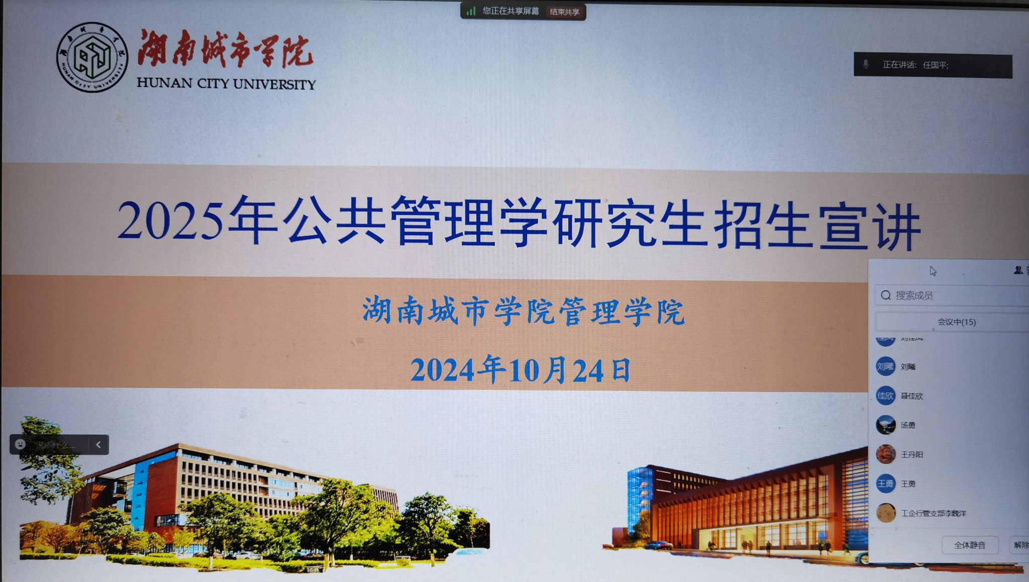 本网讯(通讯员:申翔元)2024年10月24日,管理学院通过腾讯会议平台,为湖南涉外经济学院的意向考研学生成功举办了一场线上宣讲会。副院长任国平担任主持,吸引了会计、金融等多个专业的学生积极参与。