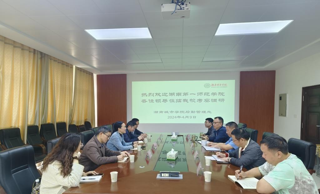 (撰稿 曾宁亮)4月9日上午,湖南第一师范学院后勤处处长彭善琼一行5人来访beat365官网,就后勤服务工作进行交流座谈。后勤管理处处长钟雪飞、副处长肖萼国、秦科及有关科室、中心负责人参加了座谈会。