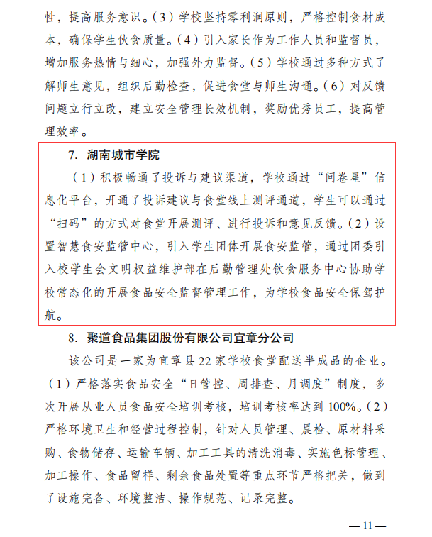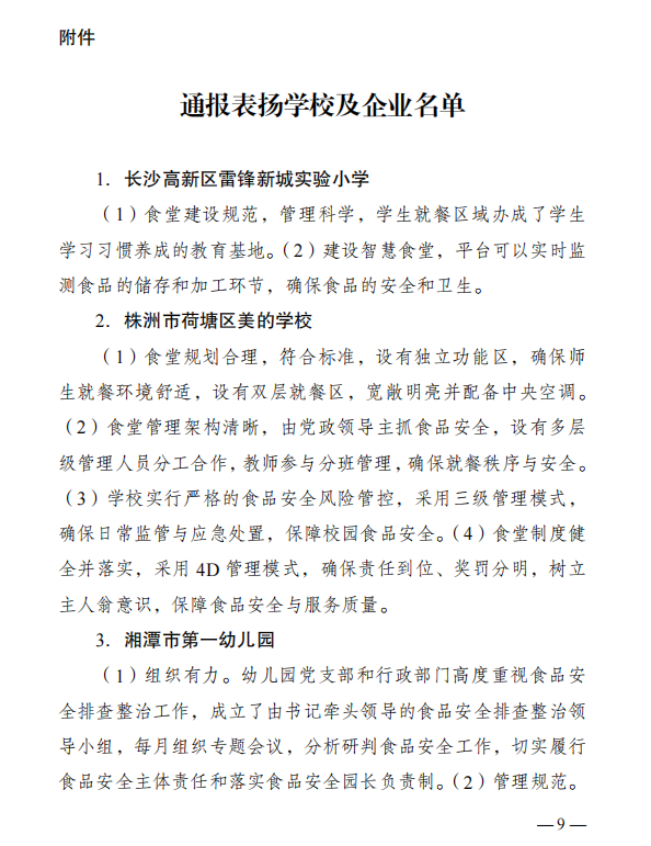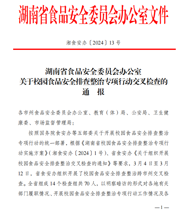 (撰稿 聂奕勋)2024年4月16日beat365官网收到湖南省食品安全委员会文件《关于校园食品安全排查整治专项行动交叉检查的通报》,通报中对beat365官网“积极畅通投诉与建议渠道”、“引入学生团体齐抓共管食品安全”等举措提出了表扬。