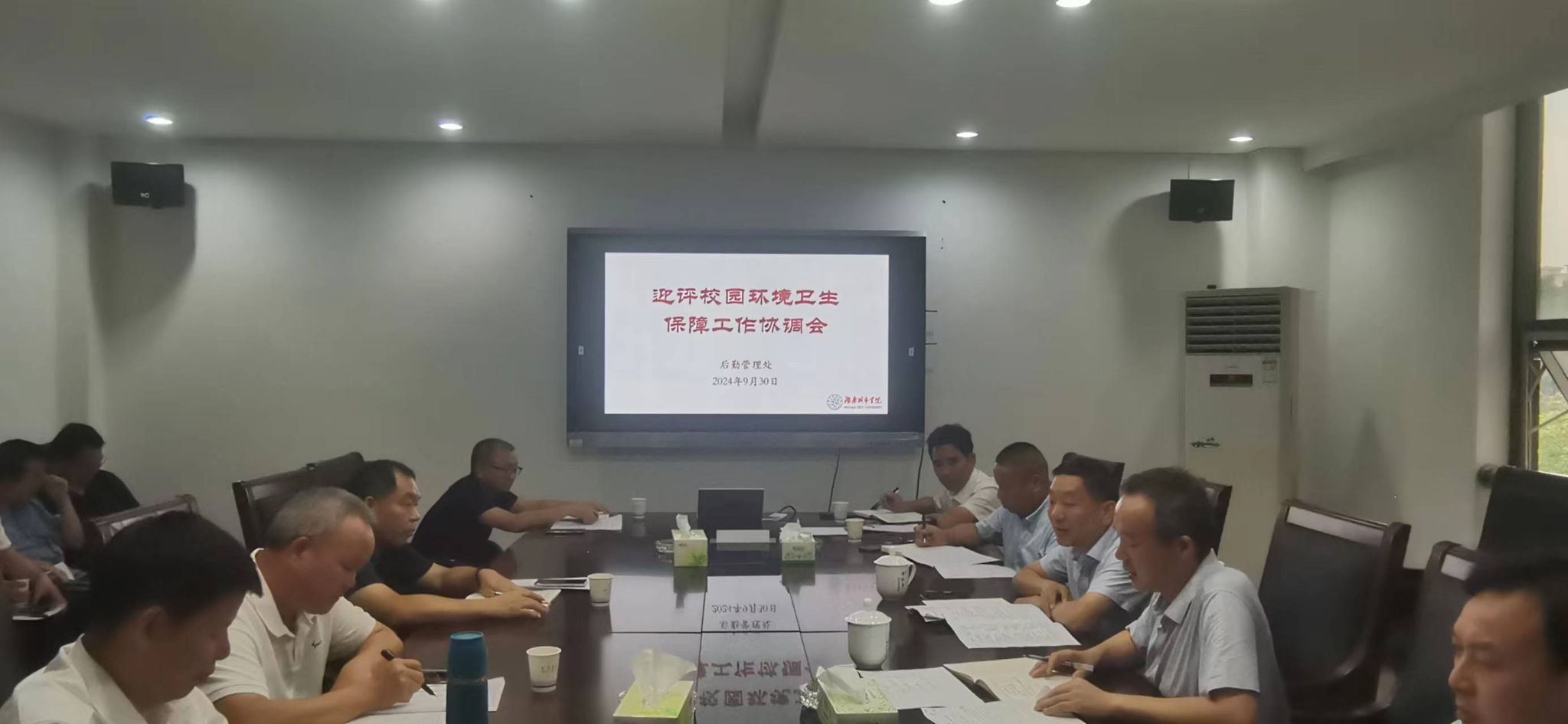 (撰稿 曾宁亮)为高质量完成2024年本科教育教学审核评估校园环境卫生保障工作,9月30日下午,在一办公楼二会议室召开了本科教育教学审核评估校园环境卫生保障工作协调会,各二级学院党委(党总支)书记、宣传部、学生工作部、教务处、保卫工作部、资产处、团委、纪委、组织部、后勤管理处负责人参加会议。会议由迎评条件保障小组副组长党委委员、党委组织部长吕贤军主持,组长党委委员、副校长谭献良出席会议并讲话。