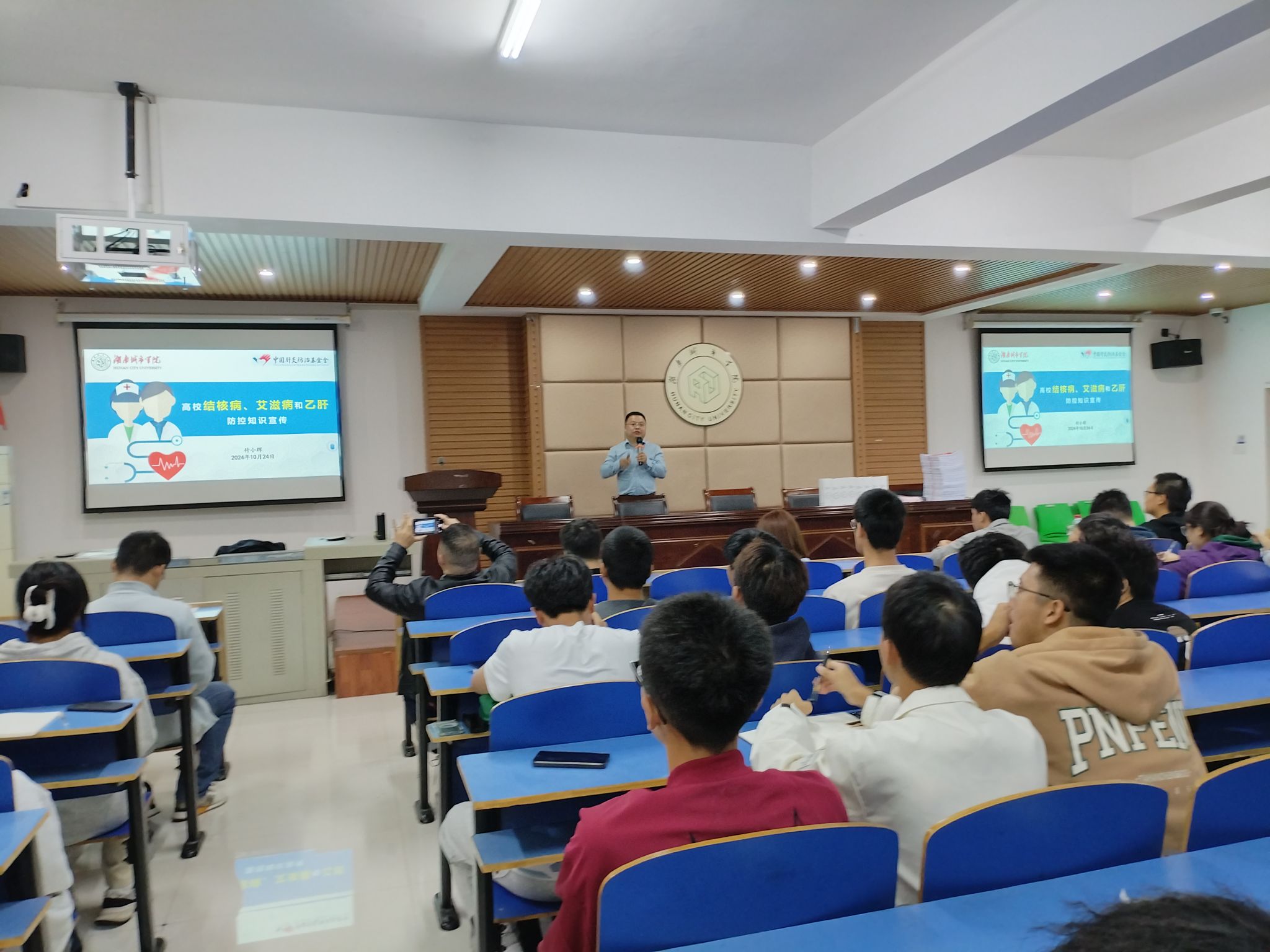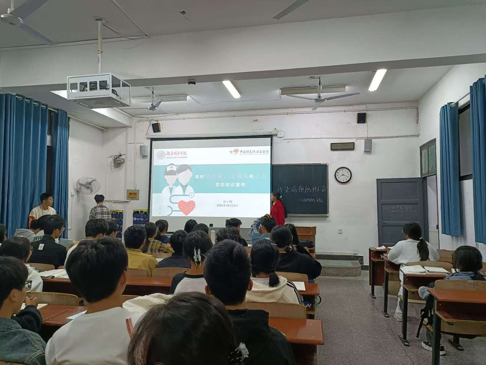 此次讲座邀请了湖南省预防医学会学校传染病防控项目组专家付小辉主讲,2024级新生班级近200名班干部参加。付小辉运用生动有趣的讲解方式,结合高校大学生生活实际和具体案例,从季节性传染病、结核病、艾滋病、乙型肝炎等常见传染病的流行病学、传染源、传播途径、易感人群、危害和预防等方面深入浅出地讲解,为学生了解和预防传染病提供了全面、准确的科学指导。讲座设有奖问答,专家与同学们进行了热烈互动,大家积极参与并踊跃回答问题。