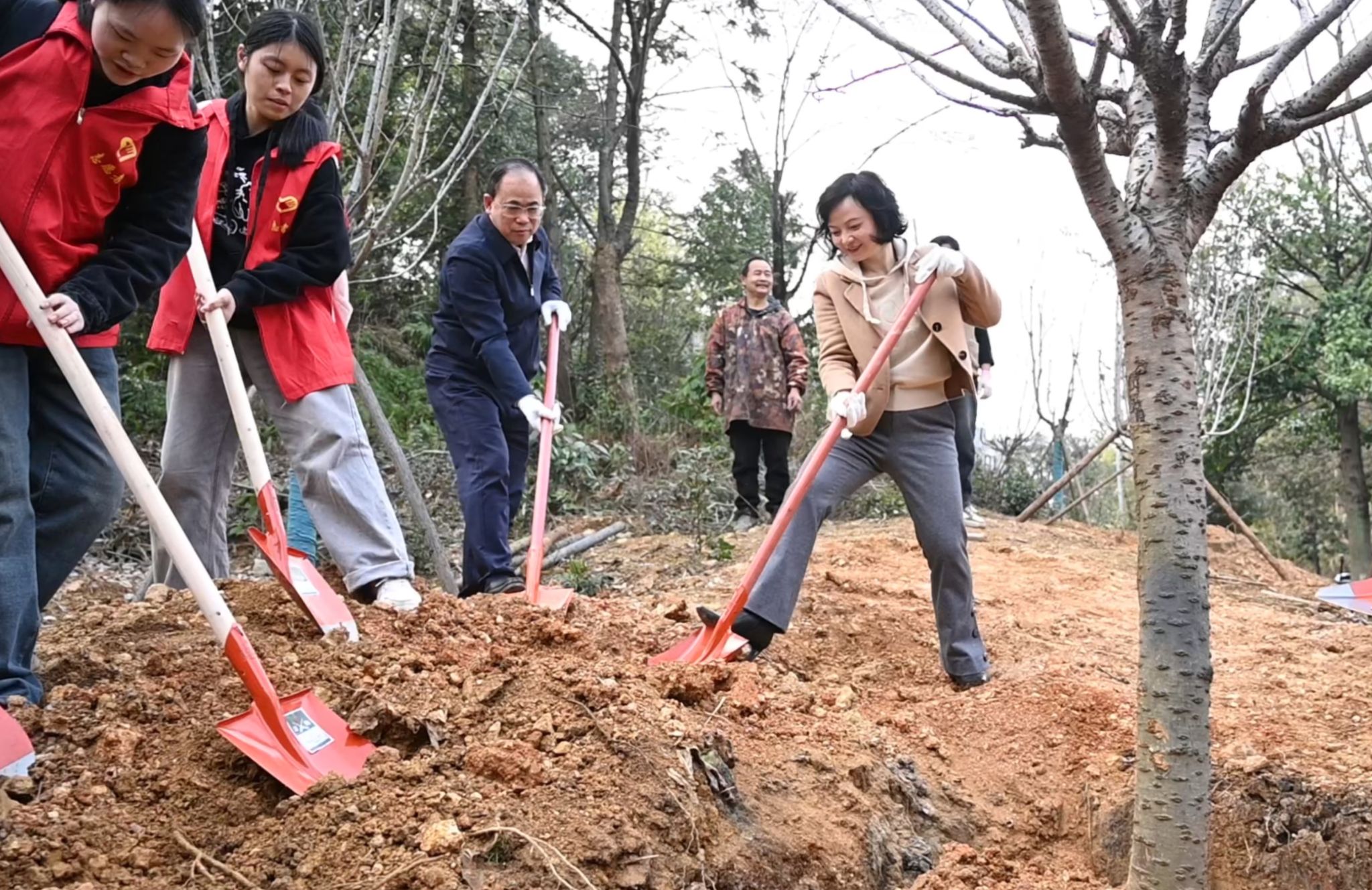活动现场暖意融融、干劲十足。挥锹铲土、定点挖坑、扶苗固根、回填培土、浇水浇灌……一道道工序有条不紊,大家相互配合。校领导们率先垂范,与师生们并肩劳作,种下希望、孕育美好。大家齐心协力,用实际行动守护校园生态底色。