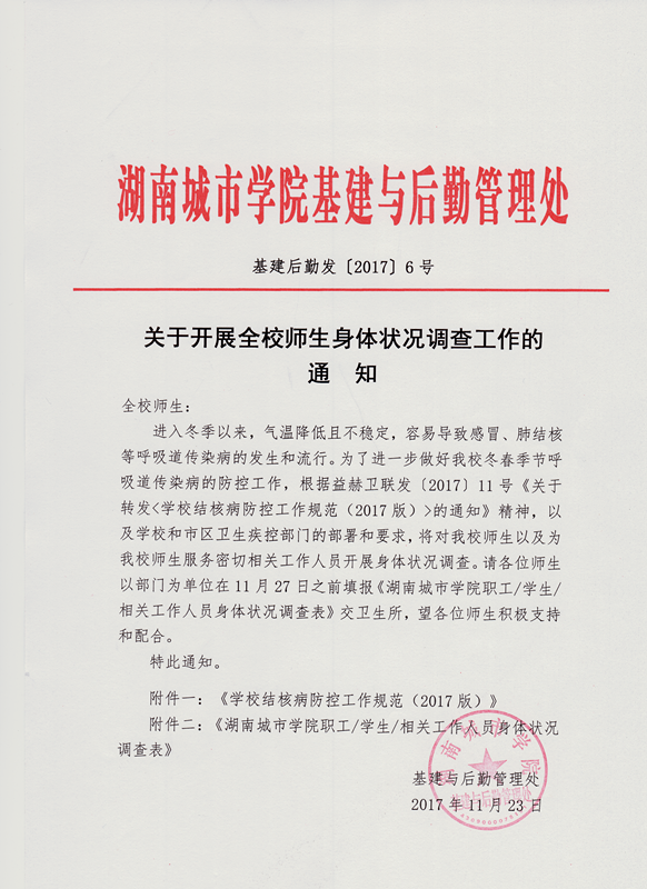 关于开展全校师生身体状况调查工作的通知