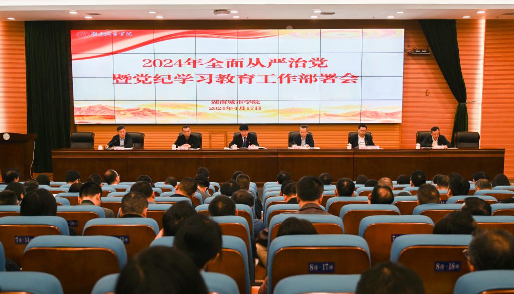(通讯员 盛洁)4月17日,学校在图书馆报告厅召开2024年全面从严治党暨党纪学习教育工作部署会。全体在家校领导出席会议。副处以上干部,相关部门内设科室负责人,纪检监察部门全体成员(含学校纪委委员、二级纪检委员)参加会议。