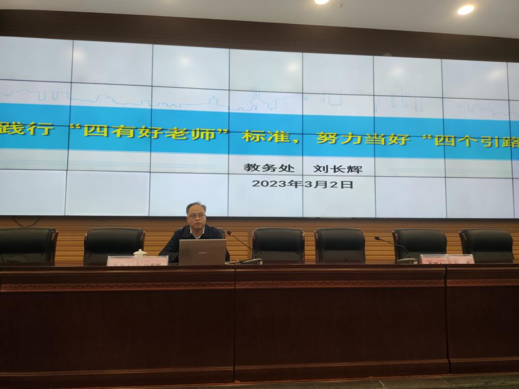 教务处处长刘长辉就高等教育新形势下应用型高校教师如何提升教学能力及青年教师目前存在的突出问题,分享了个人在教学方面的建议与思考,期望青年教师践行“四有好老师”标准,努力当好“四个引路人”。